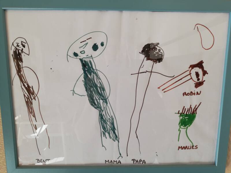 Meisje (5 jaar) tekent haar gezin